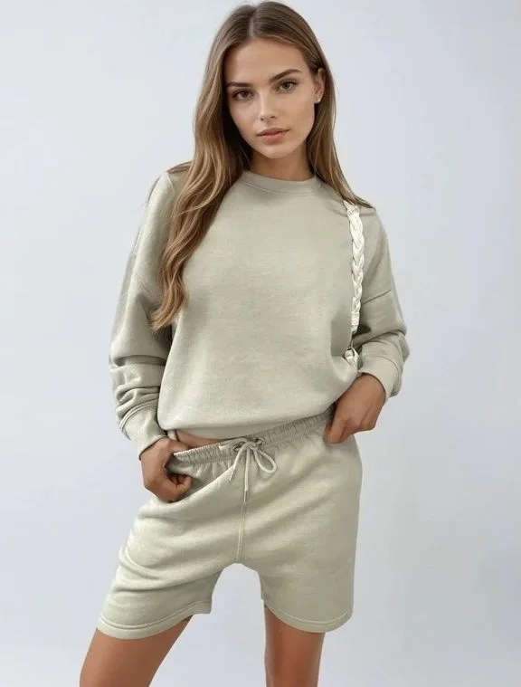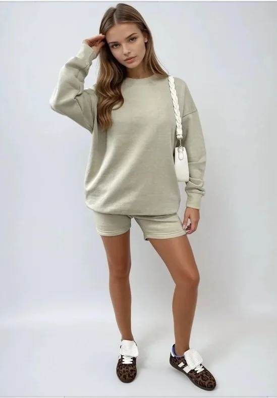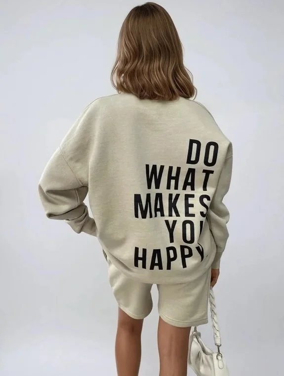 WHAT MAKES YOU HAPPY OVERSIZED SWEATSHIRT & SHORTS CO-ORD - BEIGE